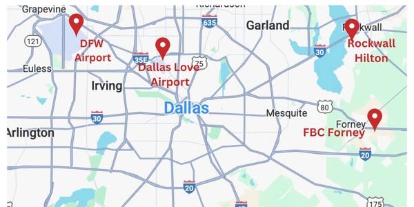 The church bus will leave the hotel at 8:00 AM on Friday, stopping first at Dallas Love Field, then DFW. Each airport is about an hour from the hotel and approximately 25 minutes from each other, so plan accordingly.